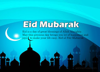My wishes for you on Eid ul Fitr comprise of happiness and glory. May Allah always guide you to walk on the right path. Sending my love to you on the occasion of Eid.- May this blessings of Allah fill your life with pleasure and open all the doors of success now and always.--eid mubarak messages in English.